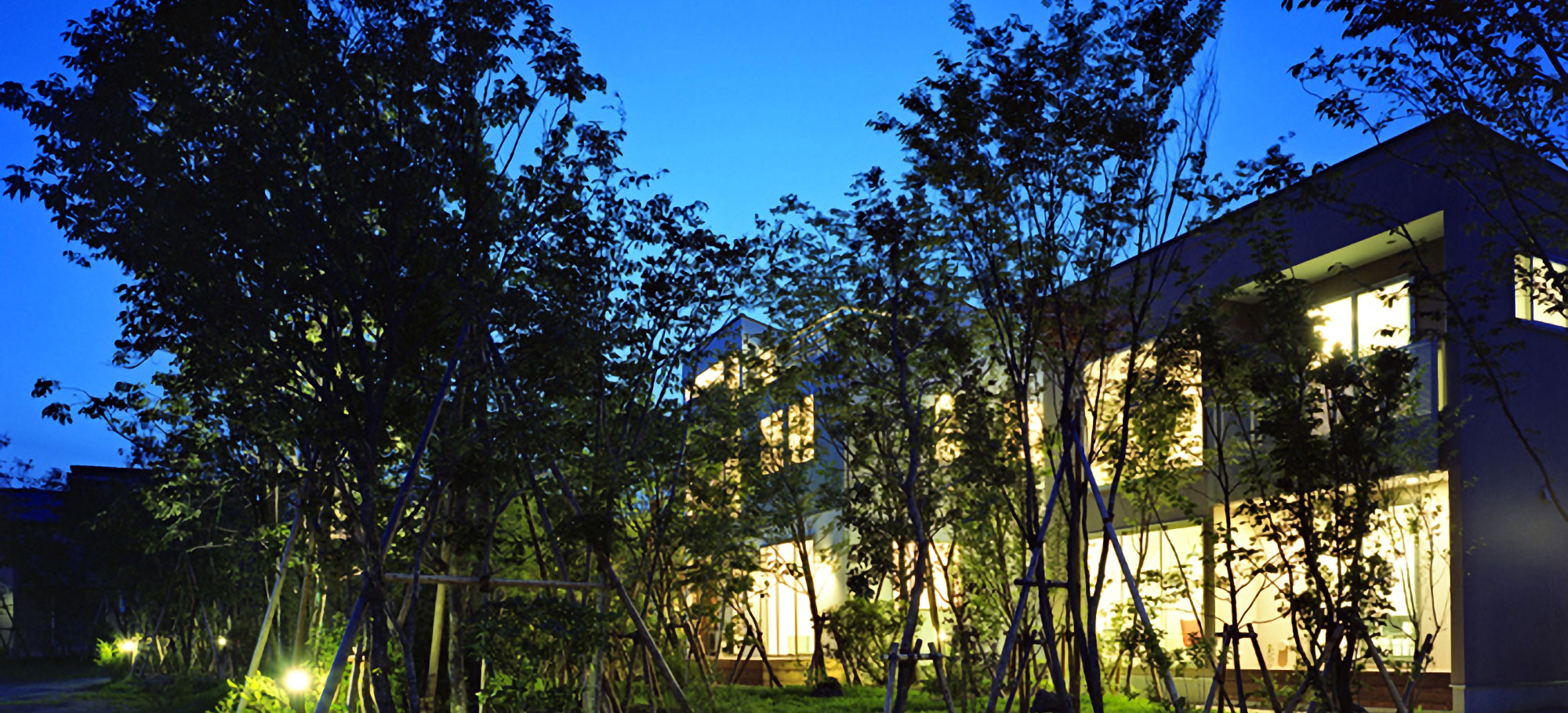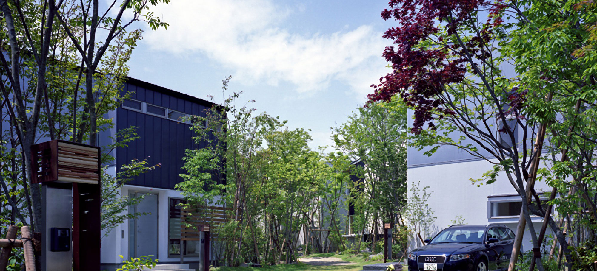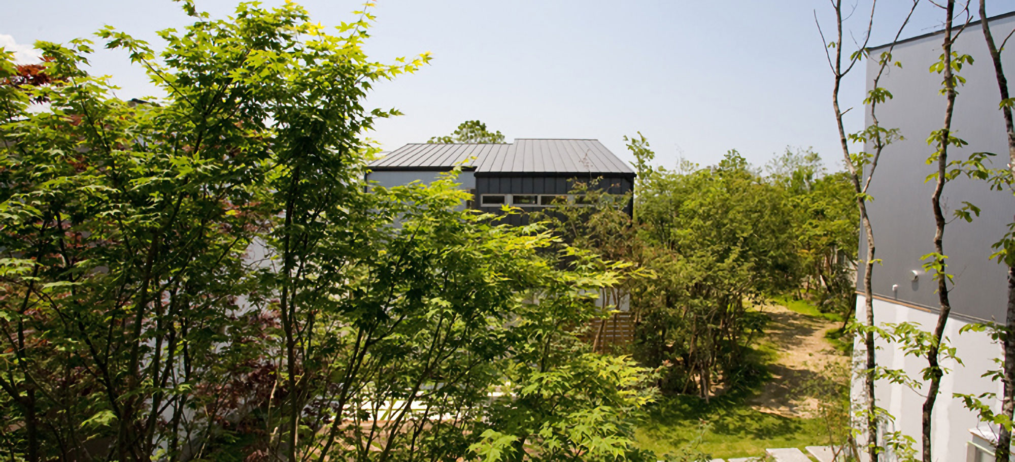 北九州市施行の〝彩りのまち、響きの〟モデル街区整備事業でのプロポーザルコンペで最優秀賞を受賞し、事業化したプロジェクトです。地元企業の㈱エス・コンセプトと共に、九州大学、北九州市立大学、北九州市の産・官・学が連携し実施計画を進めました。 計画にあたっては〝里山で暮らす〟をコンセプトに、800本にも及ぶ樹木で雑木林をつくり、その周りに43戸の家々を配置しました。 すべての家のプライバシーを確保し、快適な居住性を確保するため、建物配置と窓の位置、樹木の位置のコントロールを行い、夏には日差しを落葉樹の高木によって遮り、周囲の常緑樹の木立が熱気を吸収し爽やかな風をつくります。冬には落葉した樹木越しに日差しを取り入れ、周囲の常緑樹が厳しい風を和らげます。一つの家ではできない、集まった分だけ豊かになる住環境を実現しました。